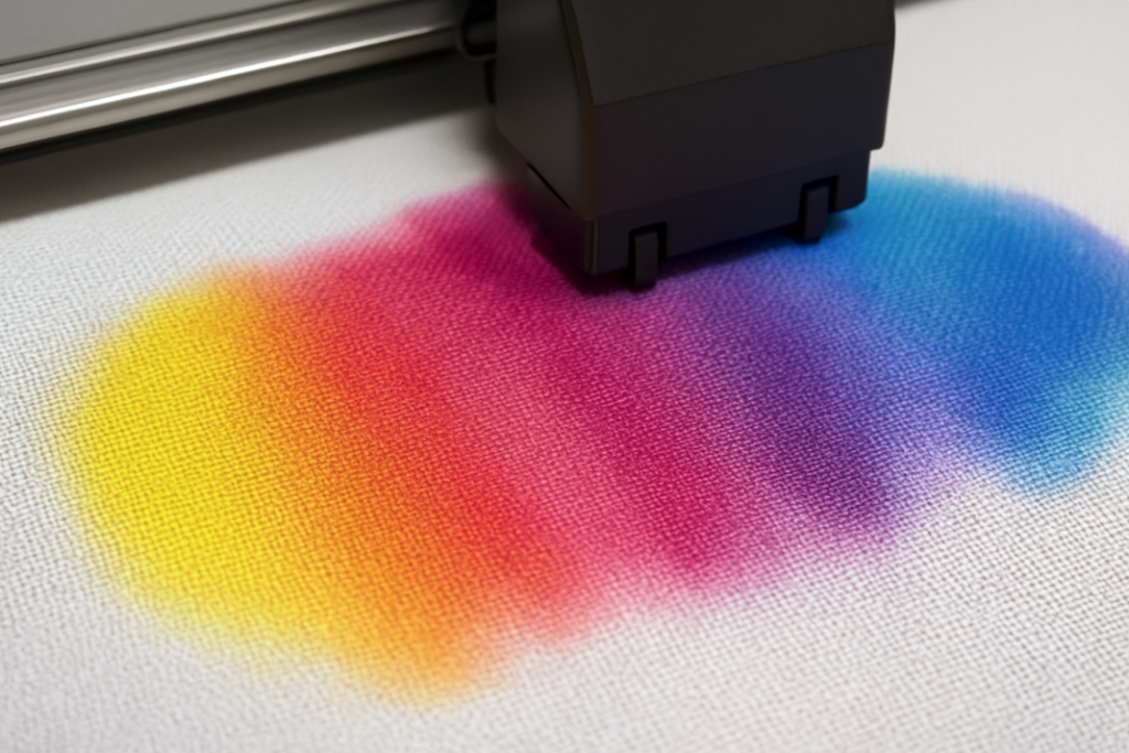 Farbe wird per Hitze ins Gewebe übertragen – dauerhaft & atmungsaktiv.