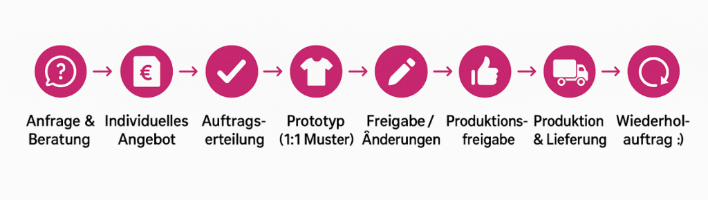 Sie möchten individuelle Textilien fertigen lassen? Wir begleiten Sie von der Beratung bis zur Lieferung – Schritt für Schritt, transparent und zuverlässig.